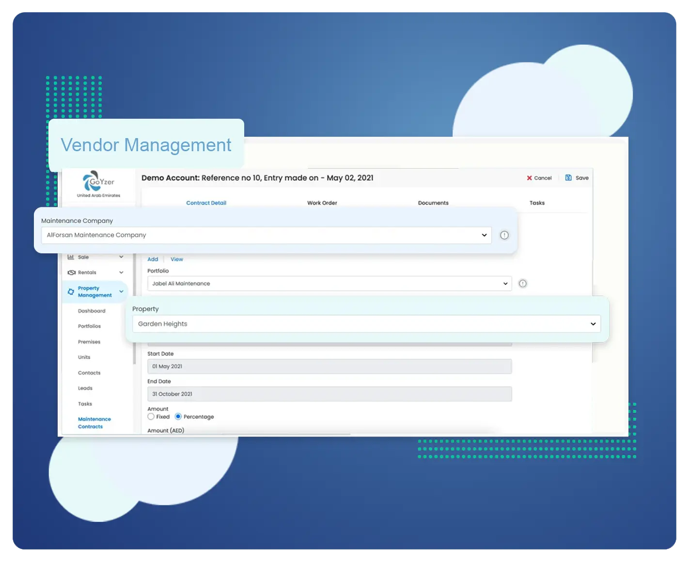 Goyzer software for property managers lets you manage a property portfolio of any size efficiently and effectively. Let Goyzer help you streamline and track all tasks in managing a property while giving you real-time updates. Designed to enhance communication within your entire network of Landlords, tenants and maintenance vendors, Goyzer helps you take care of business. Our solution remarkably combines various separated segments and stakeholders into one comprehensive platform that brings all of your property management functions to your fingertips in a simple and intuitive manner.